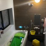 1枚目の自宅風呂をミニチュアで再現した模型にメロンソーダーを入れたのです #ミニチュアユニットバス #TOTO