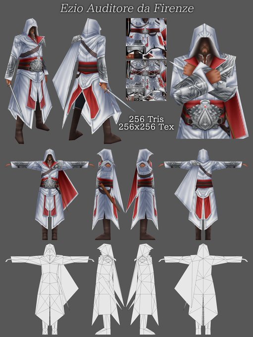 #256fes 256ポリゴンでアサシンクリードのエツィオをモデリングしましたヽ(=´▽`=)ノ やっぱりローポリは楽しいですね!(*´∀`*) Assassin's Creed Ezio Lowpoly Model