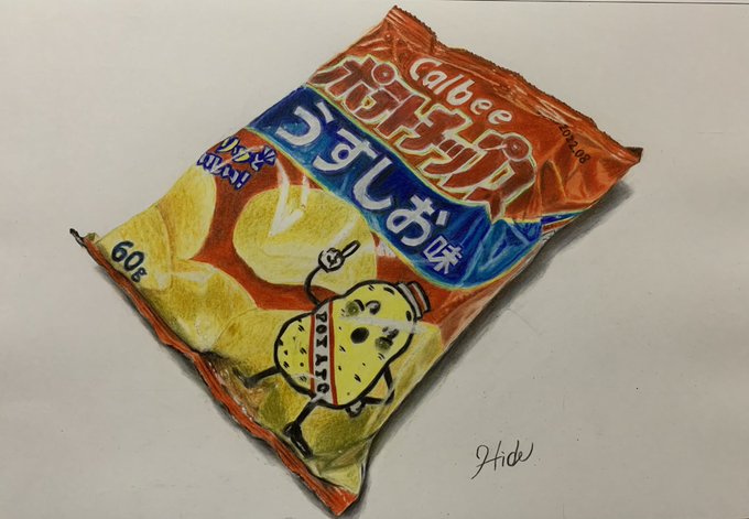 12 39 #ポテトチップス #イラスト #色鉛筆画 #絵 22/04/03 15:42