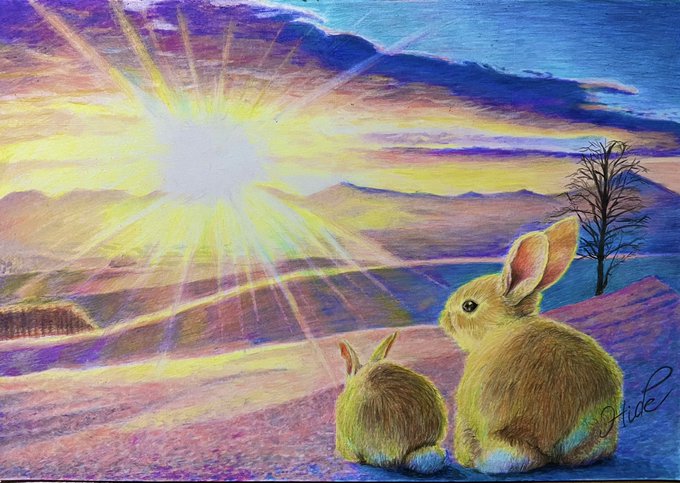#色鉛筆画 #うさぎ #あけましておめでとう