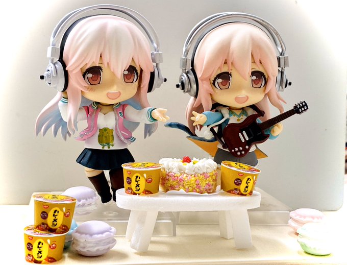 完成しました。ねんどろいどVtuberそに子をお誕生日記念製作しました! お誕生日って事で、今と昔のそに子夢のコラボ!! #そにあーと #すーぱーそに子生誕祭 #すーぱーそに子生誕祭2019