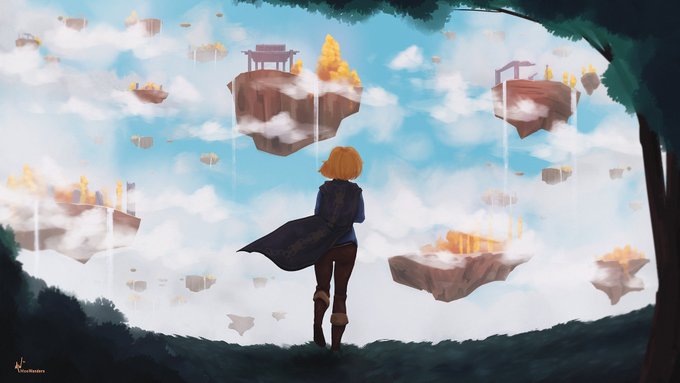 The Apex of the World 🍂 Painted digitally over ~20 hours. I'm really happy with how this turned out! Definitely one of the coolest paintings I've made. I hope you like it as much as I do! As always, retweets/feedback are appreciated! #イラスト #ConceptArt #ArtistsonTwitter