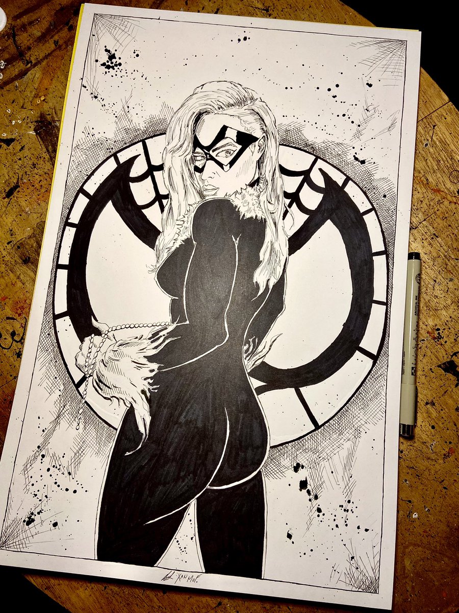 *FOR SALE‼️Black Cat #inktober2021 sketch 🔥✍🏾#XANMOF #inktober #forsale #artforsale #commissionsopen #twitch #ink #blackcat #feliciahardy #marvel #spiderman