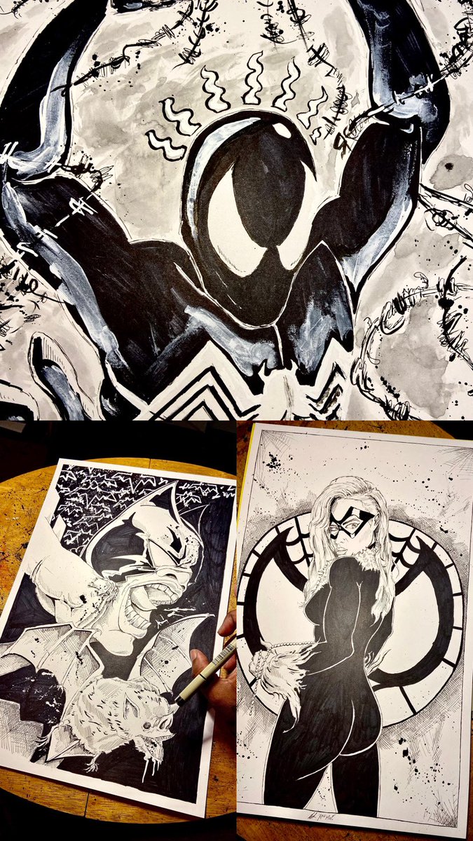 **Hey everyone! I have 3 11x17 pieces from INKTOBER left FOR SALE‼️ if anybody is interested let me know! Im cutting deals and will throw in EXTRA ART for FREE‼️#artforsale #artsale #inktober2021 #inktober #blackartist #comicartist #comicart #spiderman #batman #blackcat #xanmof