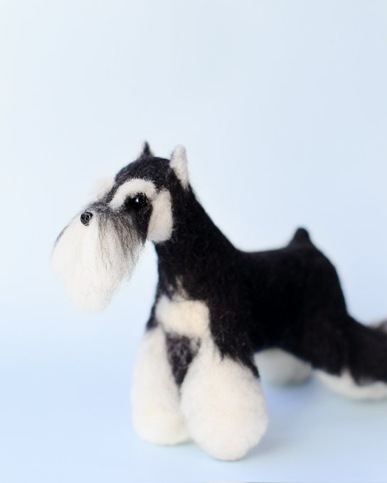 新作(*^_^*) マルシェにあわせてボディを慌てて付けました♪ あと微調整したらおしまいっ! 仔犬らしいあどけない雰囲気に❁⃘*.゚ お天気どんより続きで いいお写真撮れません泣。 #羊毛フェルト #ハンドメイド #犬好きさんと繋がりたい #可愛いと思ったらRT #シュナウザー #トリミング