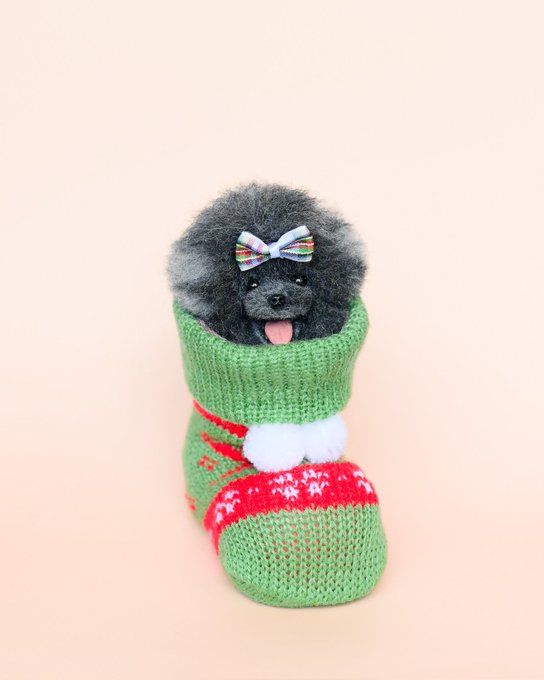 Mofっこたちもクリスマスバージョンに なってきましたよ(*^_^*) 可愛すぎる…♡ もうすぐボディもつくのでこの姿ともお別れ♪ #クリスマス #羊毛フェルト #ハンドメイド好きさんと繋がりたい #一瞬でも本物に見えたらRT #トリミング #プードル #犬のいる幸せ