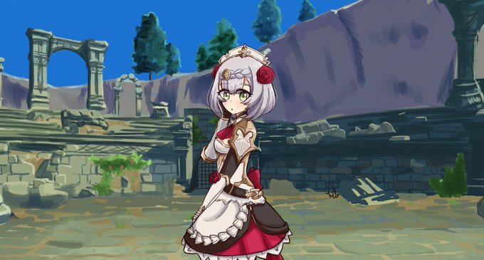 Commission for one of my friends, he wanted a background for his pc of Noelle with an ingame place, thanks for the request! #genshinimpactfanart #GenshinImapct