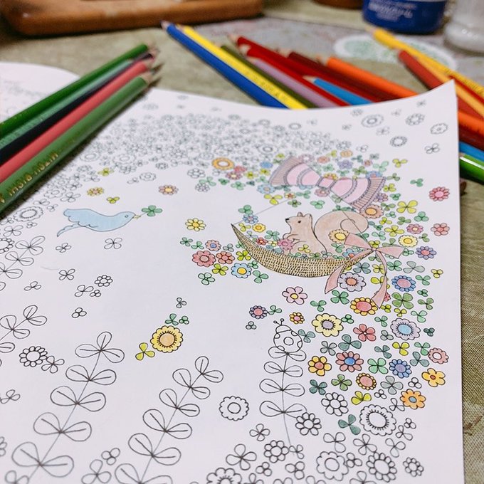 今日は色鉛筆で塗り絵をしております🎨 細かいのと、色のムラが出ないように塗るのが難しい😱💦 綺麗に塗れるように練習中です…! #色鉛筆 #ぬりえ #ゆるいイラスト #イラスト好きさんと繋がりたい #イラスト好きと繋がりたい #絵描きさんとつながりたい #いいねかRTで気になった人フォローする