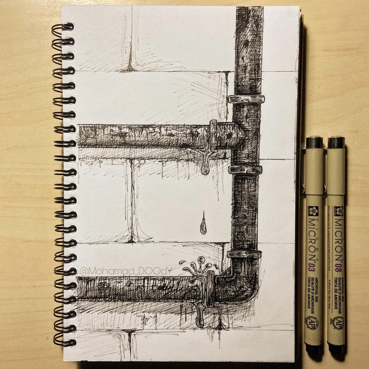 #Day9 #Pressure 😓 Went with a #SelfPortrait of myself having a mental breakdown over my sketchbook ✌️😂 Pushing through it tho make sure to have fun during the process ! IG:@Mohamad_DOOdY .. #inktober #inktober2021 #drawing #art #artist #sketch #sketchbook #illustration #comics