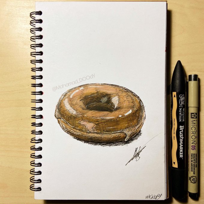 #Day28 #inktober2021 #Crispy went with a shiny original glazed @krispykreme Donuts 🍩 #NotSponsored but I won’t mind it if u sent me a free dozen 💁🏻♂️💁🏻♂️😂 hope u guys like it ! .. IG : @Mohamad_DOOdY #inktober #krespykreme #drawing #art #artist #sketch #sketchbook #arts #drawings