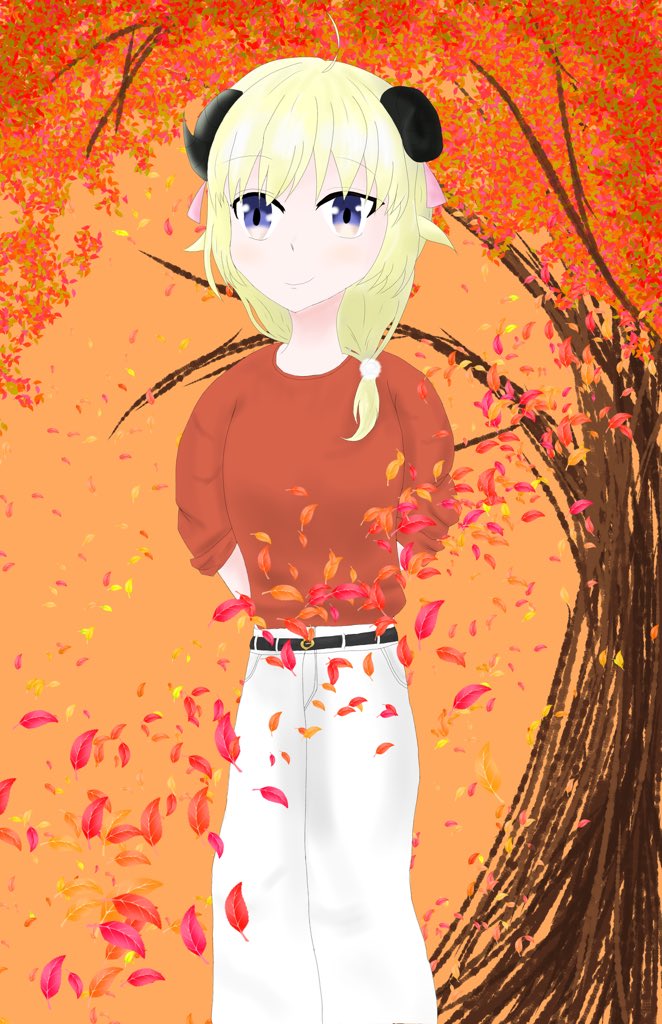 0 9 #つのまきあーと 夏も終わって、秋になったので 秋風のわためぇを描いてみました 21/09/24 01:48