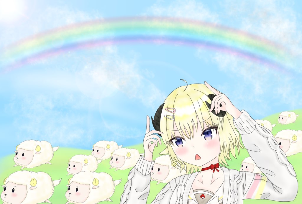 #つのまきあーと #角巻わため #ホロライブ #イラスト 角ドリルわためぇとわためいとたちを 描きました
