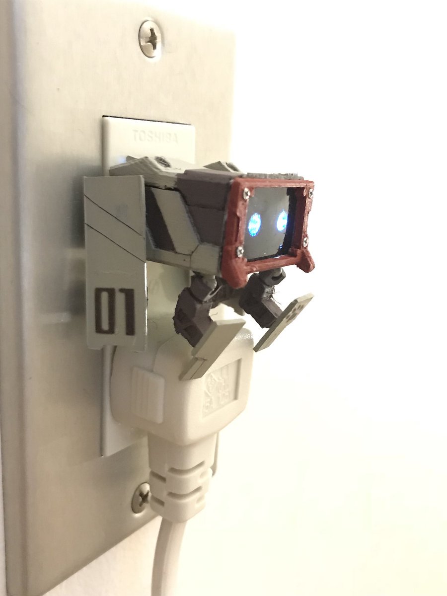 コンセント犬ロボ、完成しました! 勝手に動き回って、電池がなくなるとコンセントに充電しにきます。 コンセントを見張ってくれる番犬でもあります(という設定 #オリメカ #オリロボ