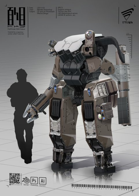 ちょっと前にフォトバッシュで描いたやつです #blender #オリロボ #オリメカ