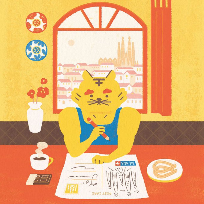 十二支シリーズ 子×イタリア×ピザ&チーズ 丑×インド×チャイ&ジャレビー 寅×スペイン×ホットチョコ&チュロス #イラスト #illustration #イラスト好きな人と繋がりたい #今月描いた絵を晒そう