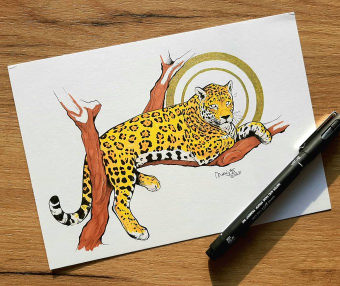 Day 8: Jaguar. I love drawing spots or stripes on animals, it definitely gives them more character! #jaguar #bigcat #feline #animal #animals #animalart #animaldrawing #animalartist #wildlife #wildlifeartist #traditional_drawing #traditional_art #promarkers #inktober #momiji95