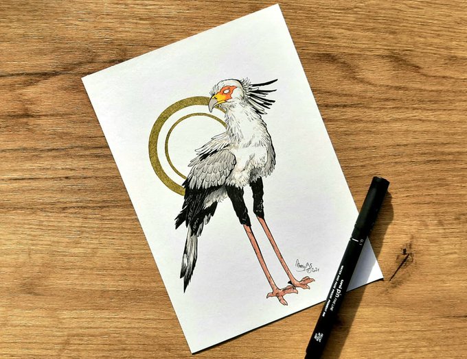 Day 24: Secretary bird. Actually one of my favourite birds! It's so weird and elegant at the same time. #secretarybird #bird #birdofprey #birds #animal #animals #animalart #animaldrawing #animalartist #wildlife #wildlifeart #inktober #inktoberchallenge #momiji95
