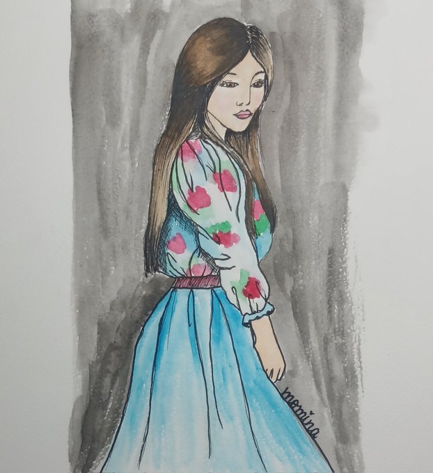Quick illustration. #inktober #day11 Video link in bio youtu.be/G_4sl0gppqM . #ink #inked #inktober2021 #drawing #art #pen #sketch #sketchbook #artist #watercolour #fashionillustration #flowers #dailyart #draw #artchallenge #artsy #fashionista #illustration #mominaart