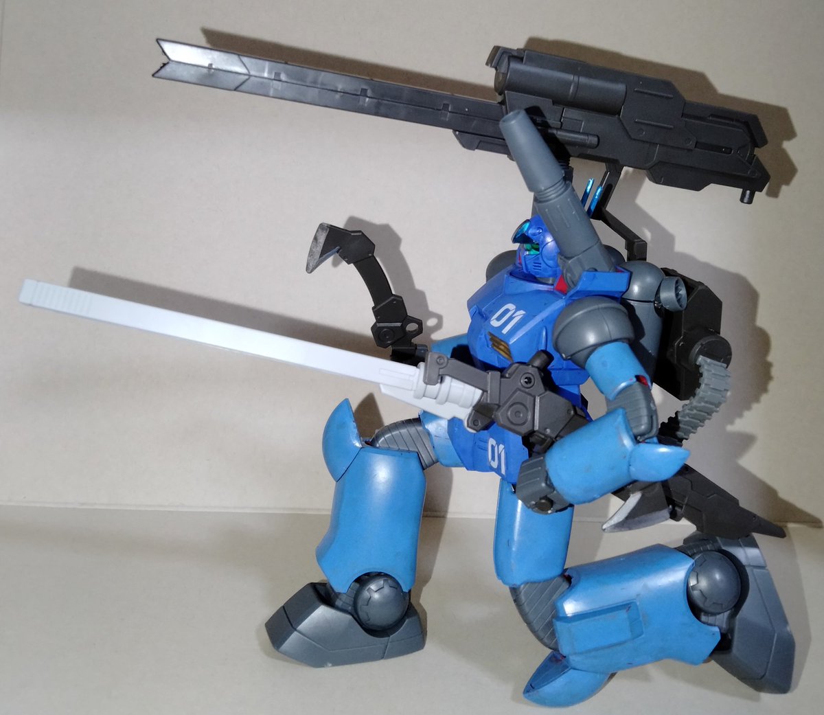 バウンドドック出来た(*´ω`*)🍑 バイパーさんのコンテスト用に作りました。 青はキャンディ塗装で仕上げました。メタリックブルー下地のシャインシルバー重ねてクリアブルーで仕上げてます。 #ガンプラ #ガンプラ好きな人たちと繋がりたい #ガンプラはどんな自由な発想で作ってもいいんだ