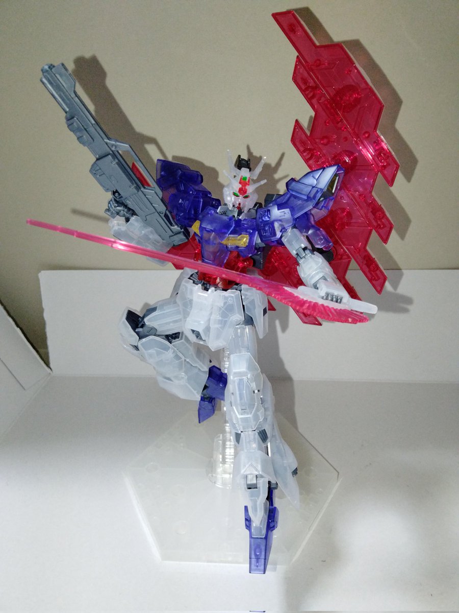 ムーンガンダム(クリア)出来た(*´ω`*)🍑 誕生日プレゼントで貰った物だけどシール無しすごいしクリアカラー綺麗やし可動クオリティ高いし非の打ち所がねぇ・・・ スゴイわこれ・・・ #ガンプラ #ガンプラ好きと繋がりたい