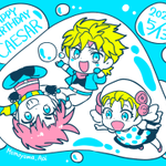 #JOJO版深夜の真剣お絵描き60分一本勝負 #シーザー・A・ツェペリ生誕祭2023 お題「シーザー・A・ツェペリ」 「ジョセフ・ジョースター」 「ワムウ」 師匠と相弟子、好敵手も誕生日のお祝いに来てくれたようです🫧🎂🥳