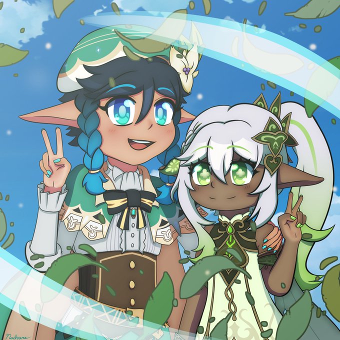 3 14 💚Just 2 green archons posing for the camera🍃 #GenshinImpact #原神 #Genshin #genshinimpactfanart #Venti #Kusanali #Nahida 22/07/07 03:00