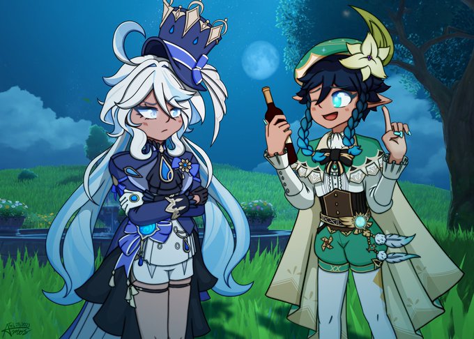 48 261 Archons with hats are my favorites now i love them both 💧🍃 #GenshinImpact #原神 #Genshin #genshinimpactfanart #Venti #Focalors 23/02/21 02:18
