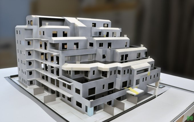 角度の違うルーバーを設計通りに模型表現しました。👩🏭 自然光の元で撮影したので影の感じが良いですね。 #建物模型 #模型 #ジオラマ #陰影で模型を映えさせろ
