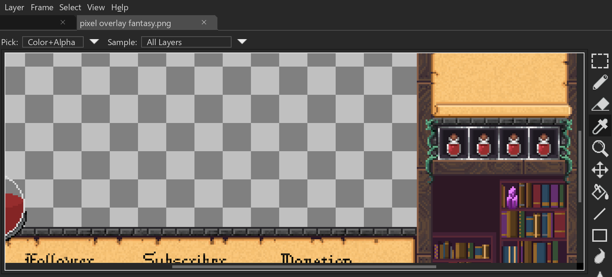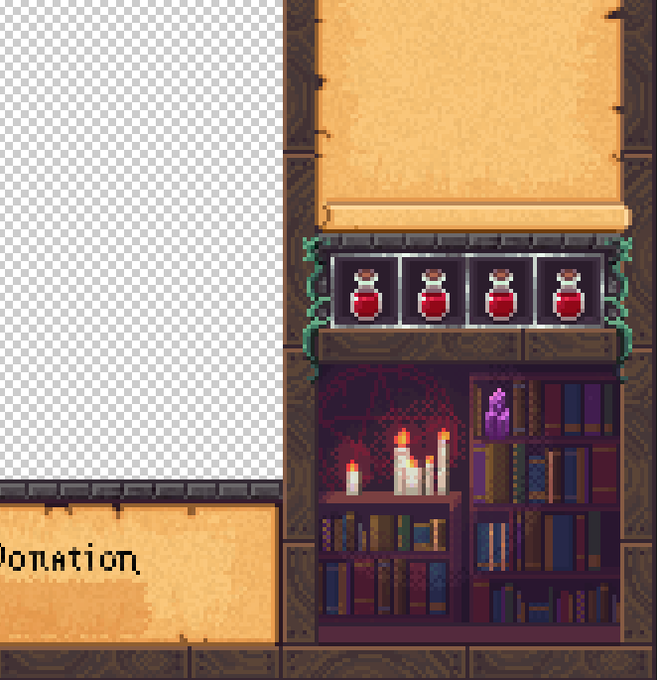 working on a streaming overlay, fantasy point and click style! #pixelart #ドット絵 #aseprite
