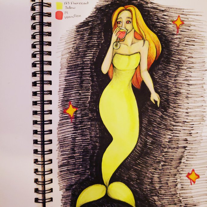 #drawtober2020 #drawtober I'm doing this crazy combo art challenge where I combine #mermay #mermay2020 prompts with #huevember to get better with alcohol markers and the very first drawing wasnt even an alcohol marker ;-; basically a highlighter in the pack that hater my pens