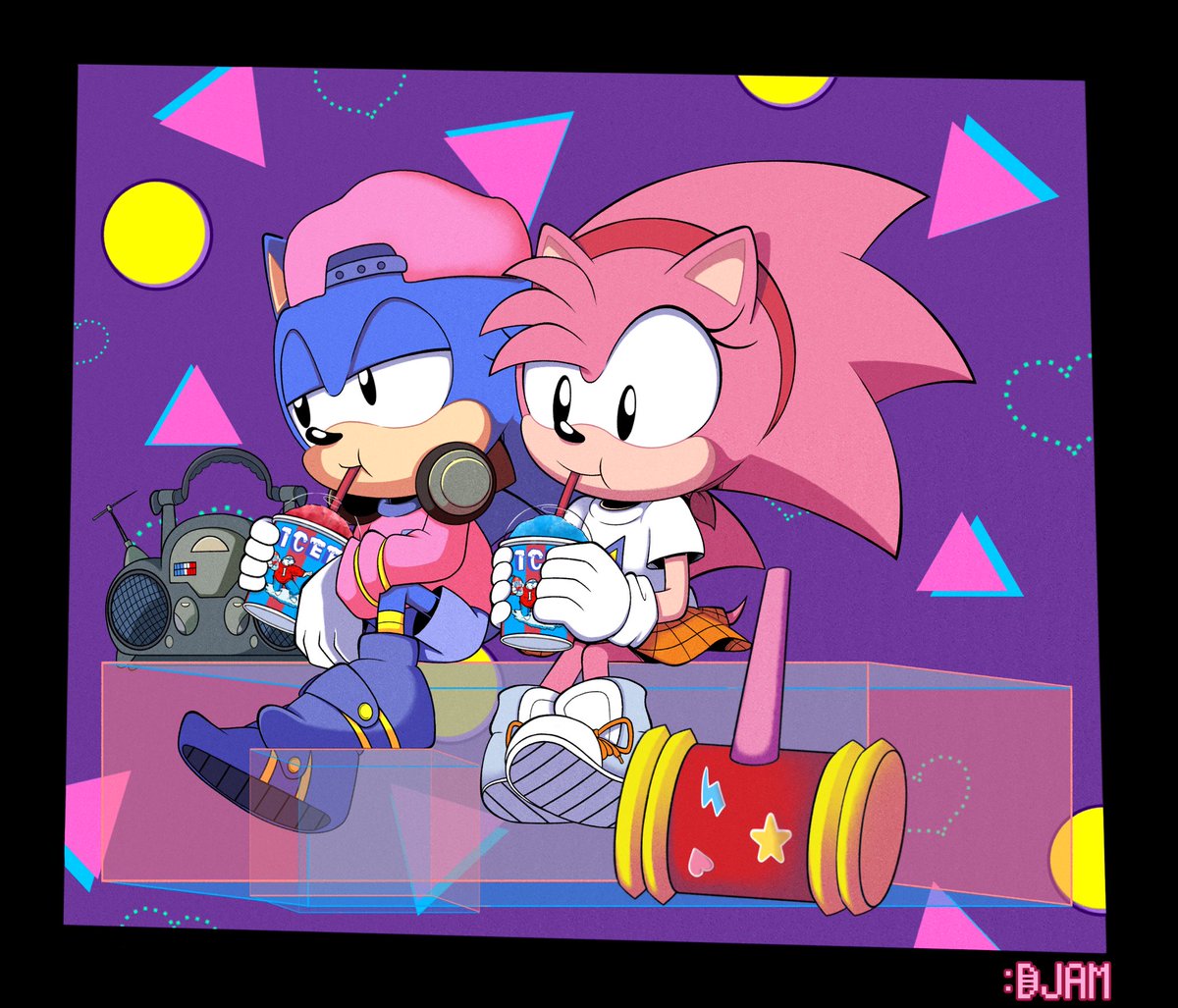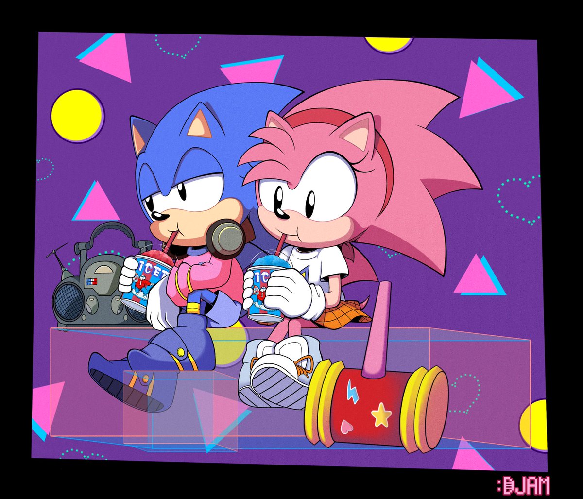 After so much time & wanting to do some 90s inspiration I wanted to do something #sonamy wholesome (also was craving some icee slushy) as well as adding a bit of the fashion cause why not #sonicfanart #SonicTheHedeghog Art-me Sonic & Amy belong to SEGA God bless you :3