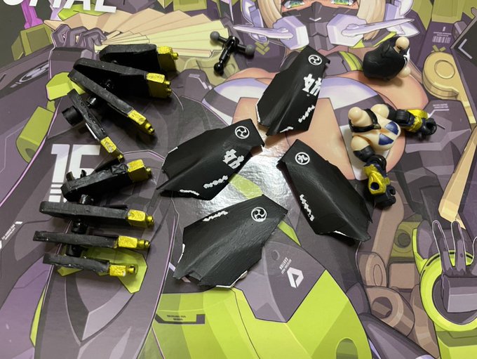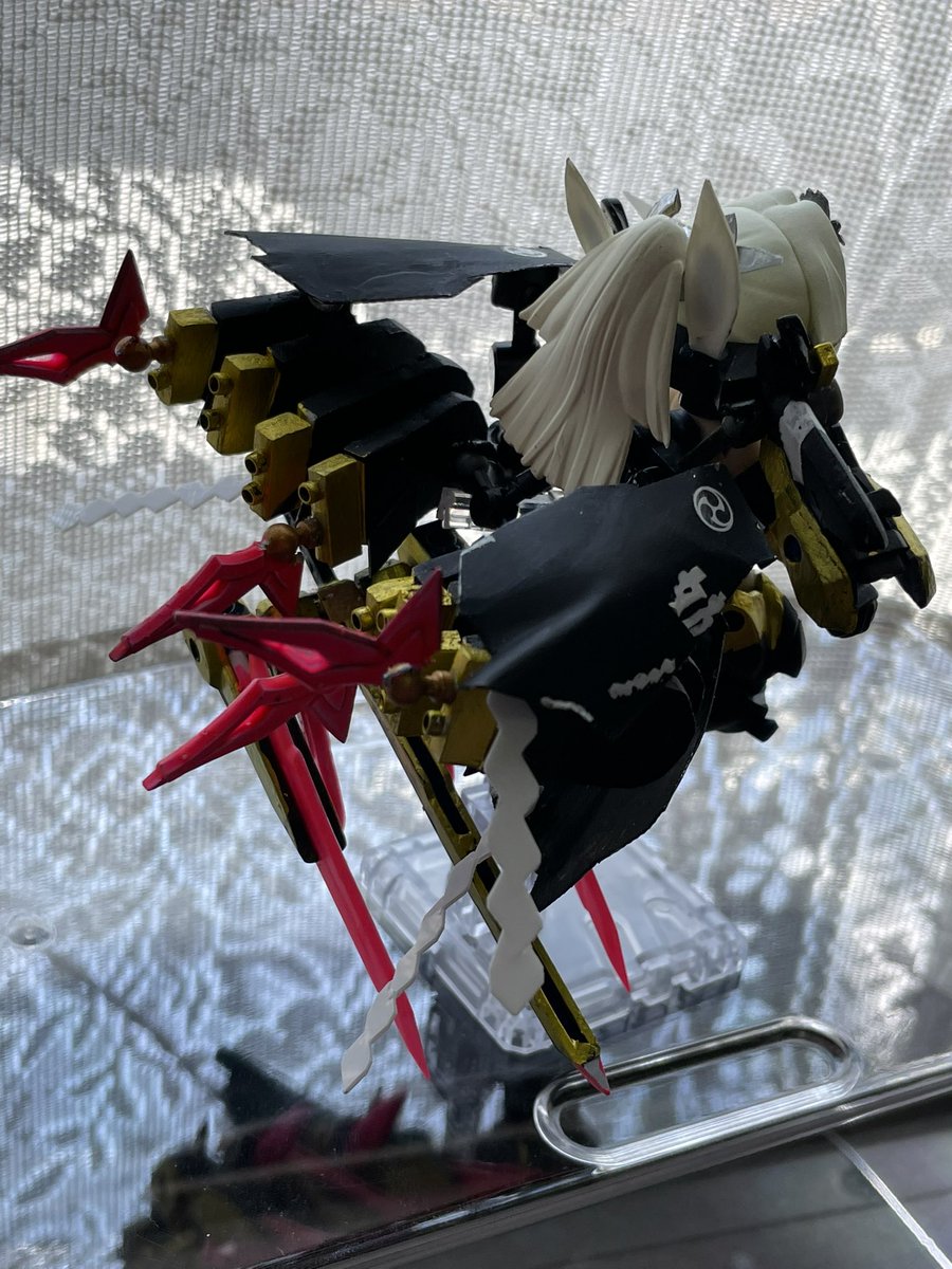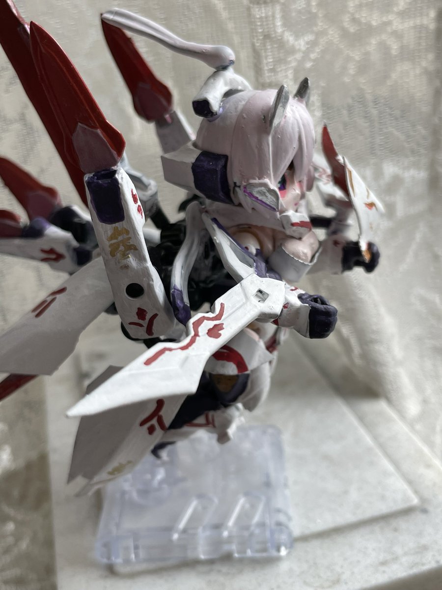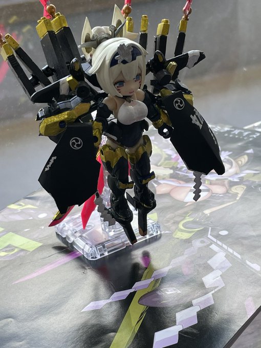 最後のはずが紹介するの忘れていた独自モード。高速強襲モードってとこでしょうか。要するにスラスタをアーマーで包み込んだだけの、割とよくあるやつですが、八連ともなると結構迫力あります。 #メガミデバイス #デスクトップアーミー