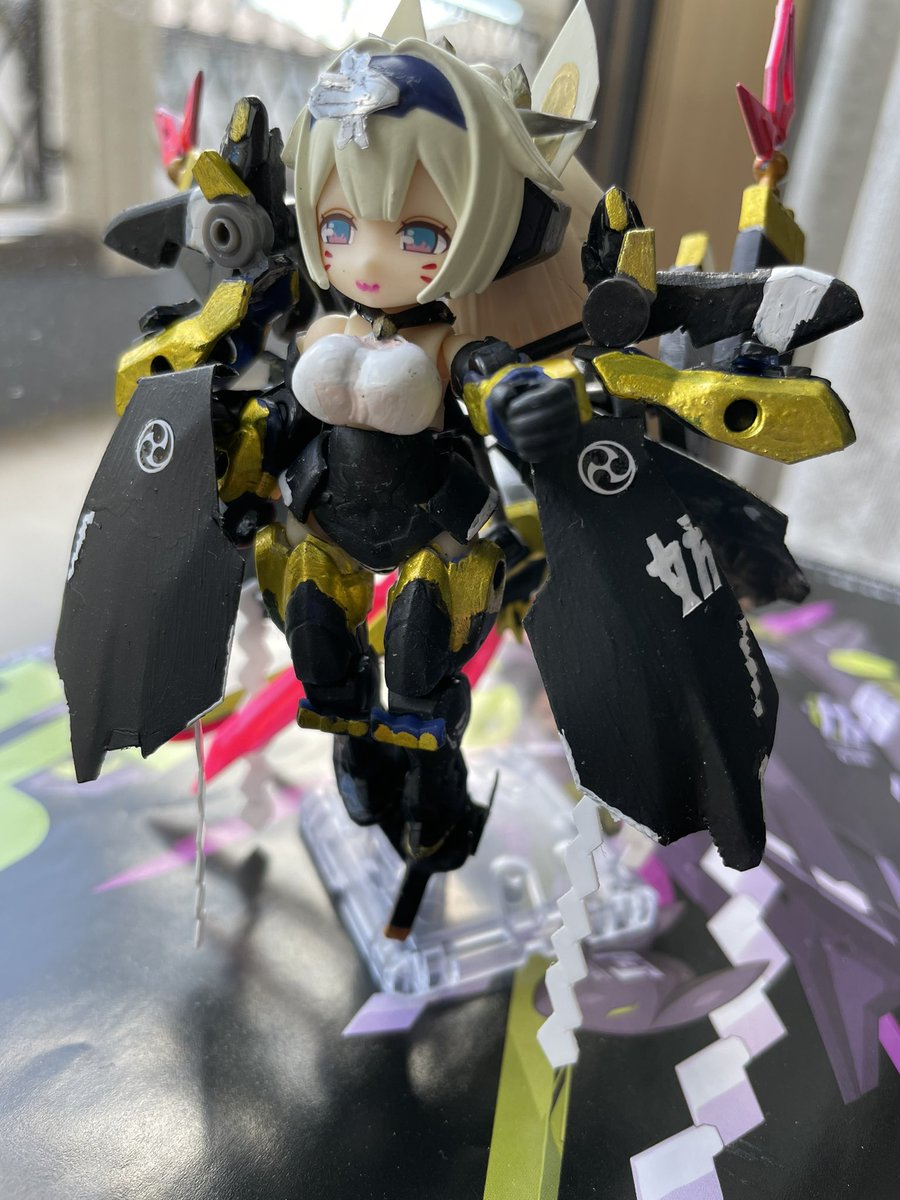 さて、起きたら夕方だったので「出来た」もののお写真です。先週、めでたく発売となりました #メガミデバイス のasuraシリーズ最新作、NO.15玉藻ノ前・・・の #デスクトップアーミー バージョンです。