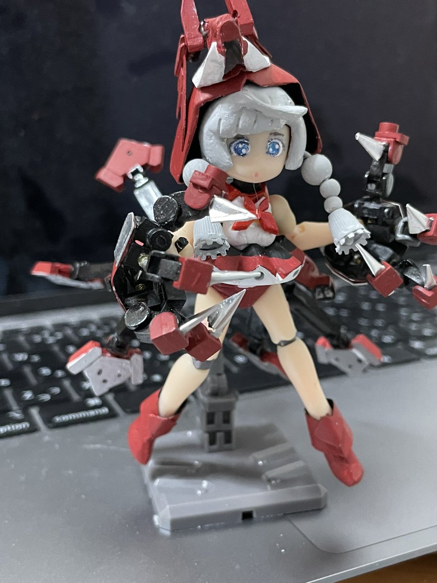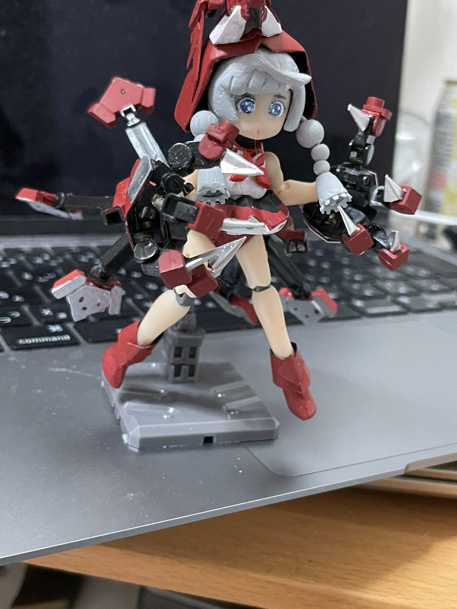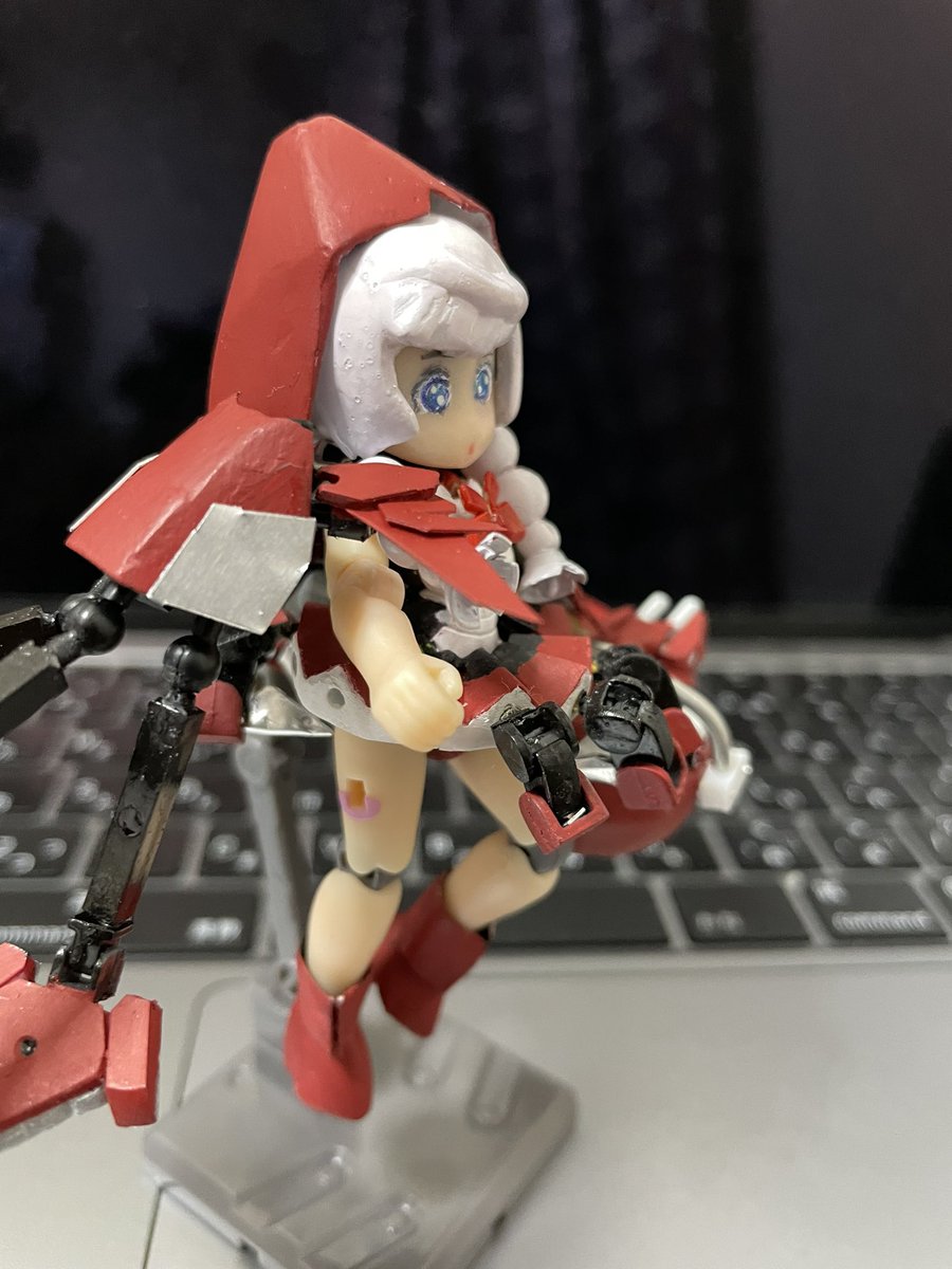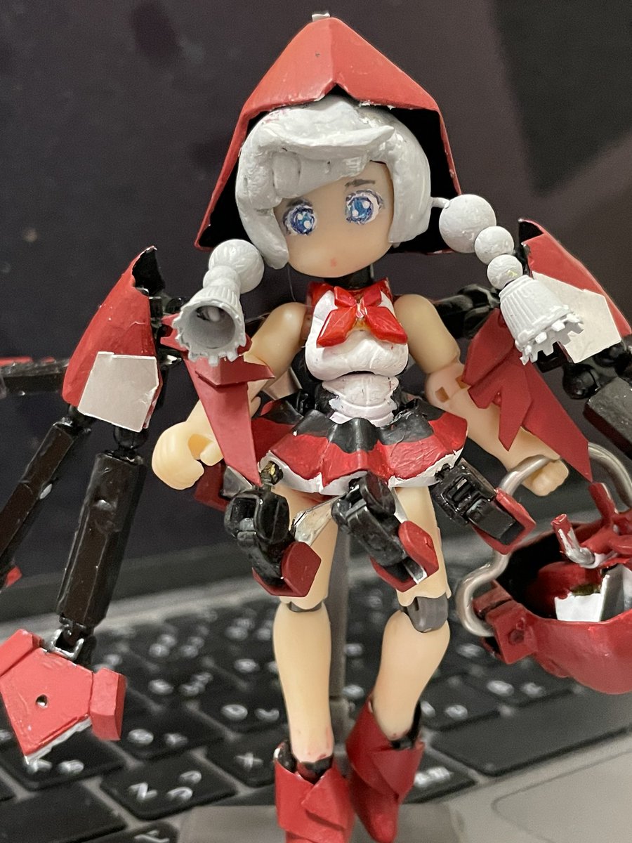 てぇことで、2月中かなと思ったら週明けになんとかなった。全体的には「試作品」で以前玉藻を作った時みたいに、これで構造とサイズ感掴めたら作り直したいとは思いますが、#デスクトップアーミー 版 #メガミデバイス カオス&プリティ 赤ずきん 追加パーツも出来上がり、一応完成です。