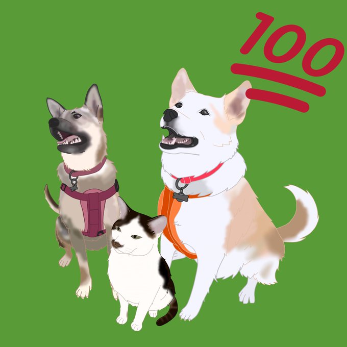 描きあげるのに2日かかった… 友達のおうちの子たち描かせてもらってました うちの子に見える!って言って貰えてすごい嬉しかった☺️☺️ #イラスト #犬のいる暮らし #猫のいる暮らし #動物イラスト #絵柄が好みって人にフォローされたい #illustration