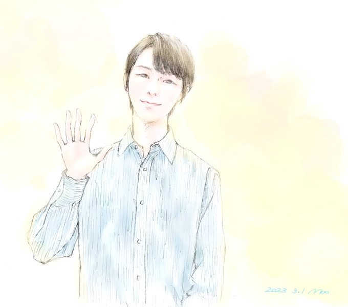 タブレットを扱ってるだけなのに✨️( ´͈ ᵕ `͈ ) #羽生結弦さんが今日も元気で幸せでありますように #HANYUYUZURU (貝塚太一さん ご撮影写真より描かせて頂きました🙏)