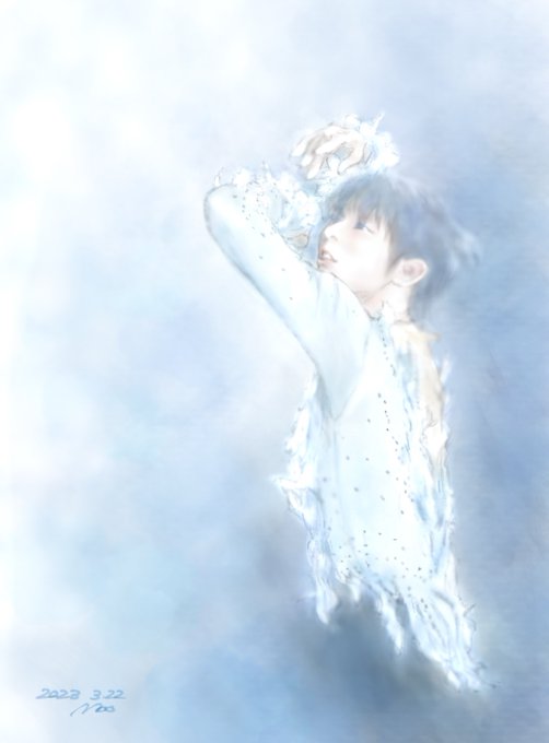 rabbit rabbit white rabbit˙˚ʚ🐰ɞ˚˙ 振り落とされないように 必死でつかまる 驚きながらも嬉しい日々✨️ お疲れではないかと 心配出来るのも幸せなこと💞 今月も 自由に羽ばたけますように🍀 #HANYUYUZURU𓃵 #羽生結弦 #飛躍の原動力 (蜷川実花さん ご撮影写真より描かせて頂きました🙏)
