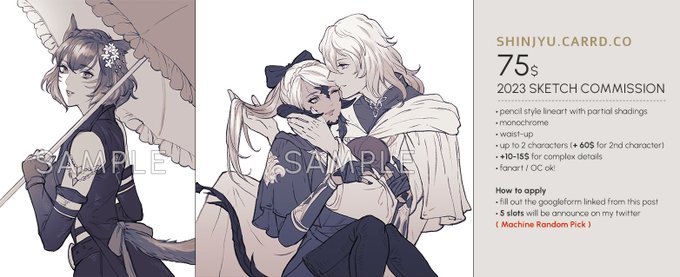 Regular Commission : June'23 batch 🗓️ Date : 27/6/2023 ⏰ Time : 20.00 **GMT+7** 🔖 First come first serve basis 📚 7 slots 🌟 Price sheet and all information here *please read!* ➡️shinjyu.weebly.com 🌟 New comm type available! : chibi / charm How to apply? read below ⬇️