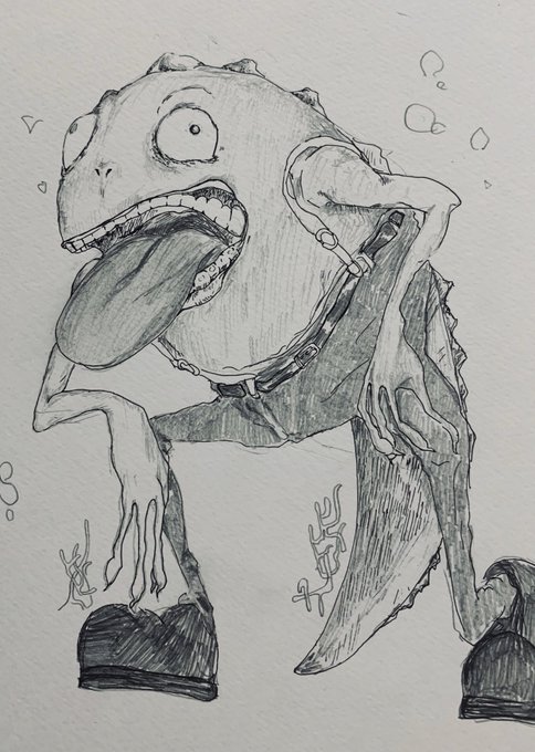 べろりんちょ。 #イラスト #人外 #アナログイラスト #ペン画 #鉛筆画 #スケッチブック #イラストレーション #オリキャラ #オリジナル #人外のイラストだけで興味を持ってくれる方へ届け #illumination #art #drow 𓆏𓆏𓆏
