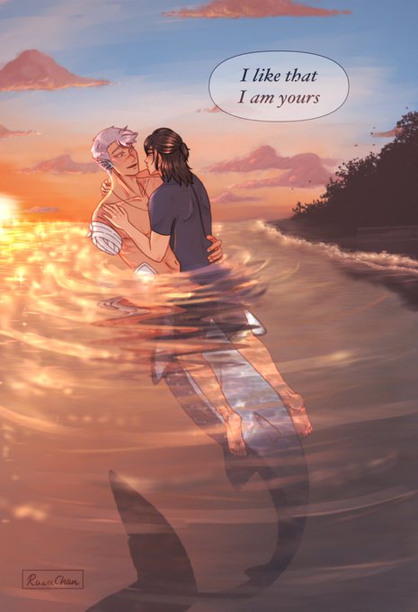 We can finally share our MakoHaru + AsaKisu September collab piece for #freefancalendar2022 💃🏻 Background + coloring by @souurin and lines + coloring by me 🥰 Hope u like it! 💙💚🧡❤️