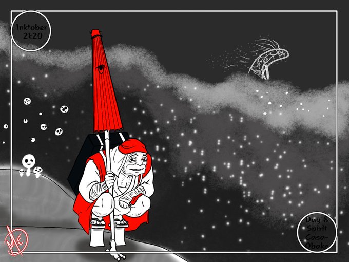 Day 17 Flight and Baku Kaguya's flight Baku home. :') #ghiblitober #yokaitober #inktober #inktober2020 #inktober2020day17