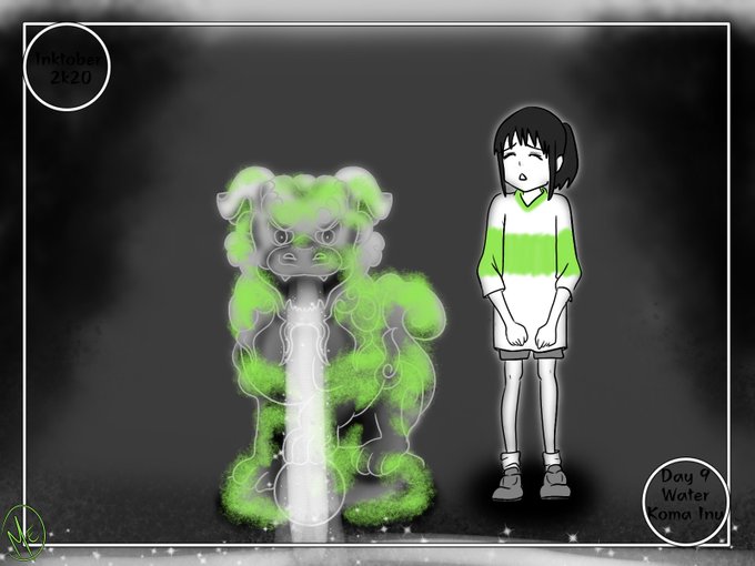 Day 9 Water and Koma Inu ...yeah my illustrations are getting worse 0- 0 Unintentionally though- My days just randomly fills up with other priorities. #ghiblitober #yokaitober #inktober #inktober2020 #inktober2020day9