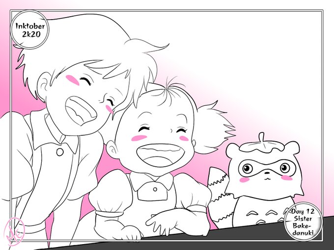 Day 12 Sister and Bake-Danuki (Tanuki) I'm feeling extremely exhausted today- So lazy Art it shall be. #ghiblitober #yokaitober #inktober #inktober2020 #inktober2020day12