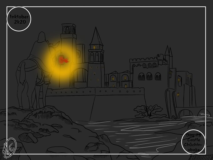 Day 18 Castle and Chōchin obake ForgiveME i'm getting lazy at this :'( #ghiblitober #yokaitober #inktober #inktober2020 #inktober2020day18