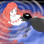 Day 16 Girl and Aosagibi I was a little unsure on how to carry this out `-` #ghiblitober #yokaitober #inktober #inktober2020 #inktober2020day16