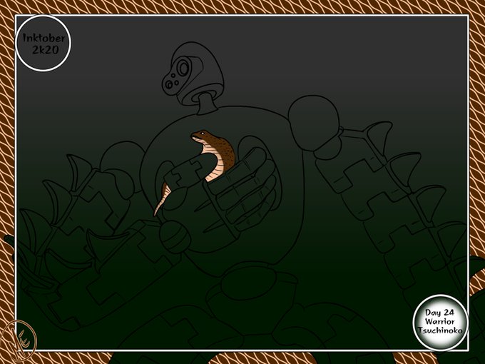 Day 24 Warrior and Tsuchinoko I don't know what I'm doing anymore .-. #ghiblitober #yokaitober #inktober #inktober2020 #inktober2020day24