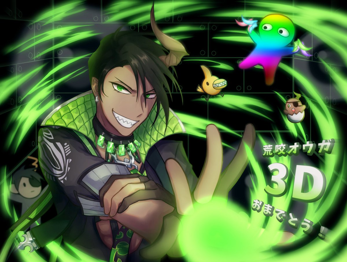 3Dおめでとうございます!🎉🥳🎉 お披露目楽しみ!頑張れ!🐃💚💪✨ #荒咬オウガ3D #オウ画