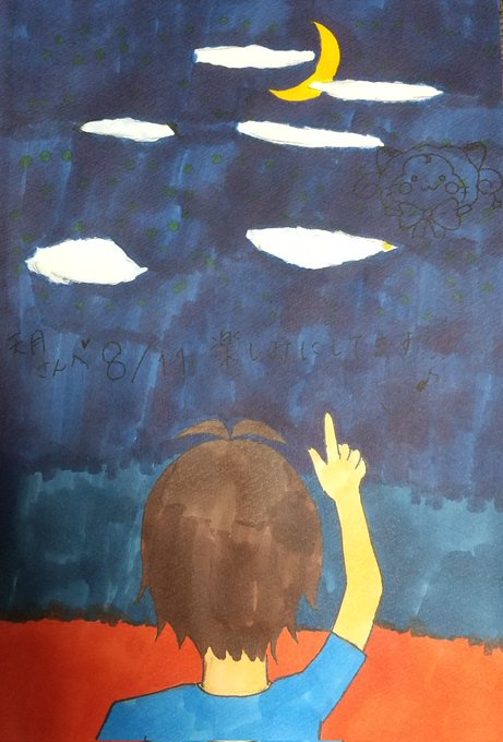 0 9 #天月イラスト部 夕方の月🌇🌙*゚ 君も同じ月を見ているのかな *️⃣隠れ正宗くんとメッセージがあるので探してみてください🎶 22/08/02 09:11