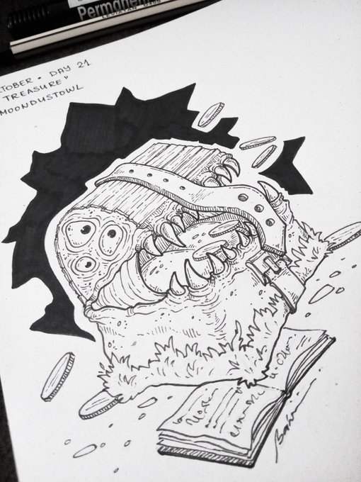 Would you dare..? How much some forgotten treasures worth..? - A "cute" #monsterchest for #Inktober day 21 prompt: #treasure #Inktober2019 #ArtistOnTwitter
