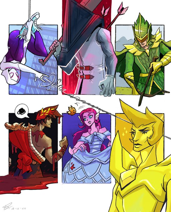 #sixfanarts #sixfanartchallenge 2022! All the way from Instagram #spidergwen #pyramidhead #raveleijn #zagreus #miranda #yellowdiamond